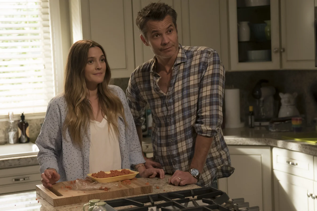 Santa Clarita Diet features Nathan Fillion as Gary West, a rival real estate agent who clashes with the main characters, Sheila and Joel, played by Drew Barrymore and Timothy Olyphant. The show revolves around Sheila’s transformation into a zombie, which leads to many bizarre and humorous situations. After antagonizing Sheila and Joel, Gary meets an unusual fate—he is reduced to a disembodied, undead head that the couple keeps around to assist with their real estate work.