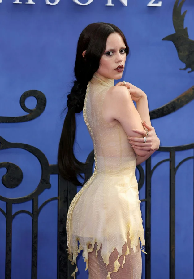 Her choice of the nude snakeskin gown reflects not just a striking style moment but also reinforces the eerie and sophisticated atmosphere that defines the show. Ortega’s fearless fashion risk signals her growing status as a fashion icon capable of blending glamour with the macabre themes of her character.