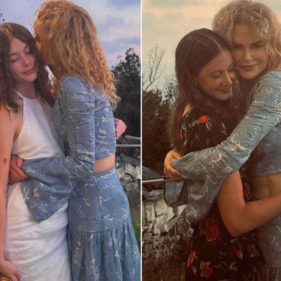The collection of photos included tender moments featuring Kidman with her daughters Sunday, 17, and Faith, 14. One image showed Kidman and Sunday embracing before a scenic ocean backdrop, both sporting naturally wavy hair; Kidman wore a blue and white floral two-piece outfit while Sunday chose a black floral dress. Another picture captured Kidman kissing Faith on the cheek as they posed, with Faith wearing a white dress and her hair in natural curls.