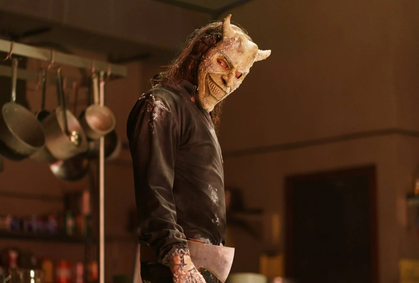 The evolution of their partnership stretches over a creative arc from Sinister’s troubled writer to the terrifying antagonist in The Black Phone, a horror story inspired by Joe Hill, Stephen King’s son. In this 1970s-set thriller, Mason Thames stars as Finney, a boy abducted and trapped by a masked kidnapper known as The Grabber. Trapped in an abandoned basement, Finney’s only aid is an old black rotary phone through which he connects with the spirits of previous victims.